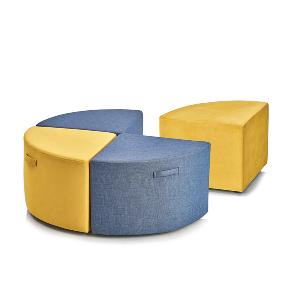 Quart de Pouffe Get A Quote The Quart de Pouffe redefines modular seating with its quarter-circle shape and vibrant two-tone design. Crafted for dynamic environments, it can be used individually or clustered to form playful arrangements that spark interaction. Upholstered in soft yet durable fabric, each unit offers plush comfort with easy mobility thanks to […]