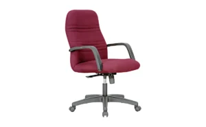 The chair is finished in fabric and features a well-cushioned ergonomic back that offers superior comfort and support. The material ensures lasting durability, even with daily use.