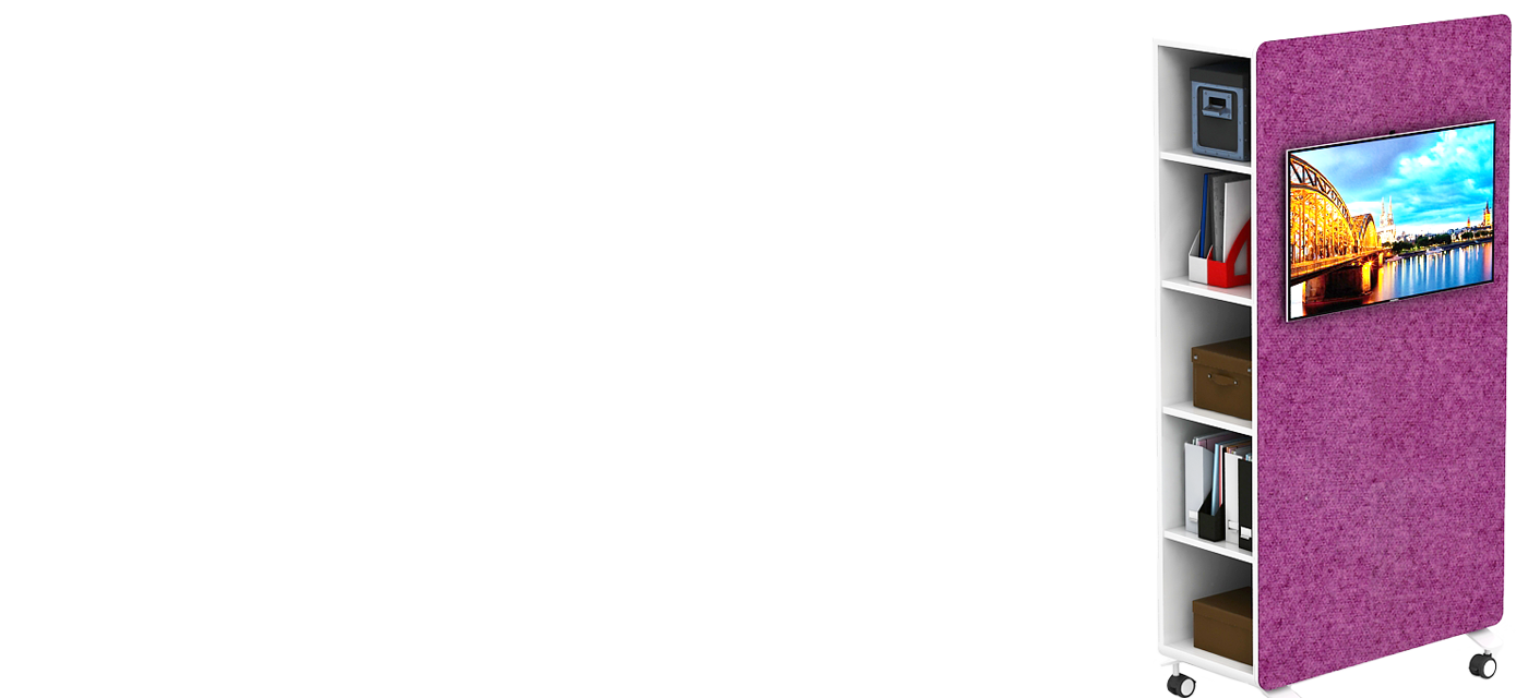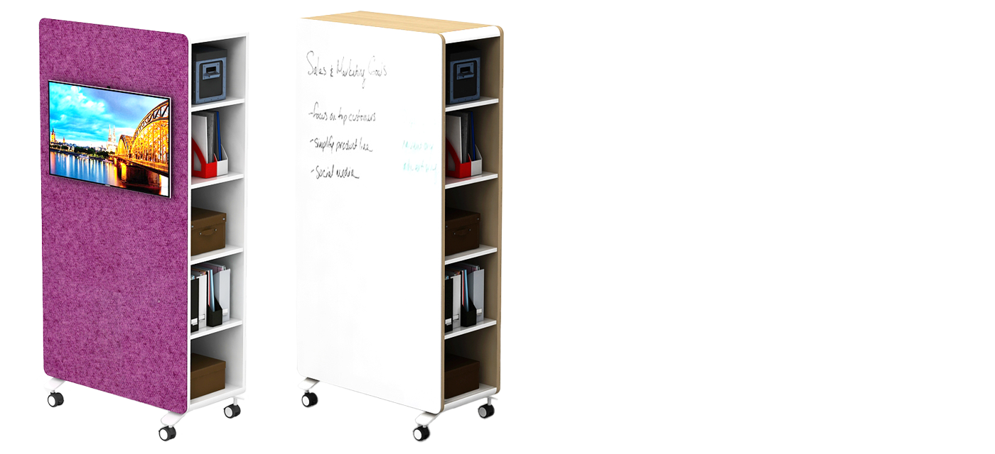 Caddy offers the flexibility to mount a display unit on one side and use the other as a writing board, making it ideal for teaching, presentations, and group discussions. With open shelves for storage, Caddy keeps essentials organized while staying compact and easy to use.