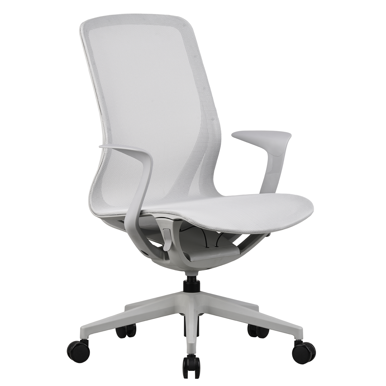 A durable five-star base with high-load nylon casters ensures stability. It provides smooth movement and long-lasting performance.
