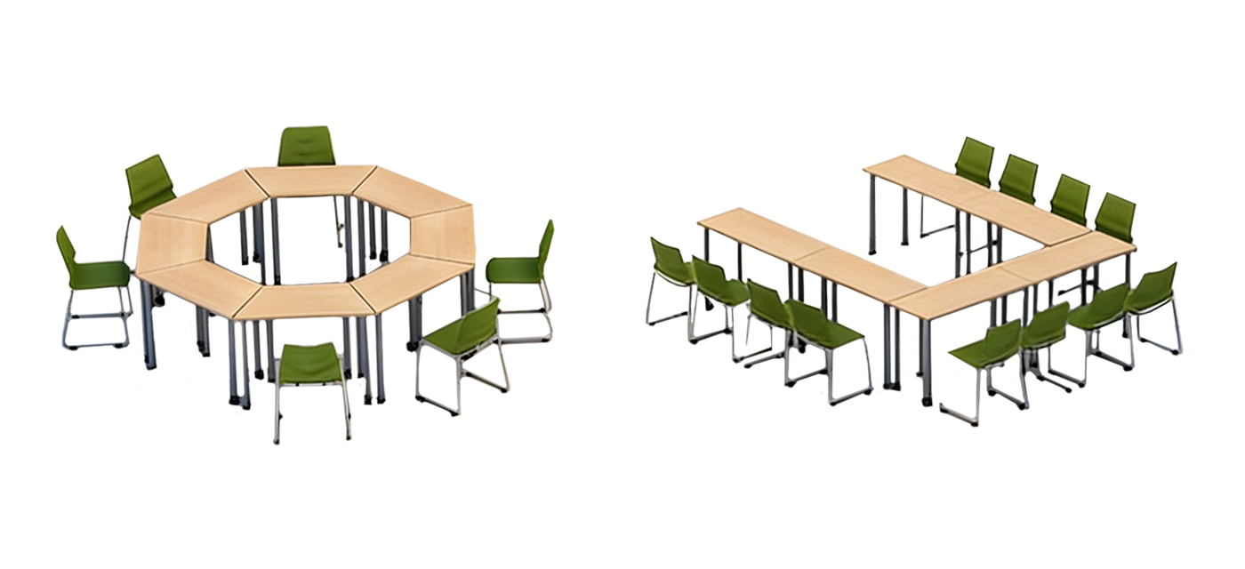 Glide’s modular table shapes let educators create layouts that fit their teaching style. Combine rectangles, trapezoids, crescents, and wave tables to form circles, clusters, rows, or dynamic patterns. Each setup promotes movement and collaboration, supporting active, agile learning environments.