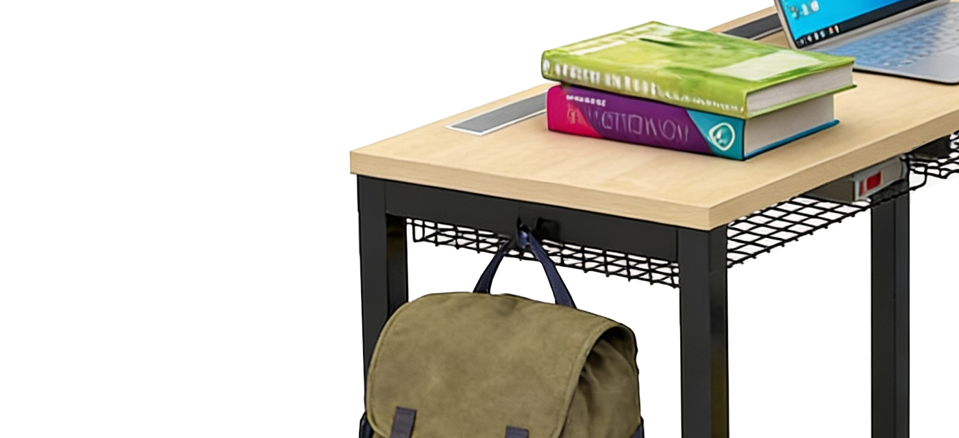 The integrated bag hook gives students a dedicated spot to store backpacks and belongings, keeping floors uncluttered and movement effortless. This simple yet essential feature enhances classroom safety, organization, and accessibility.