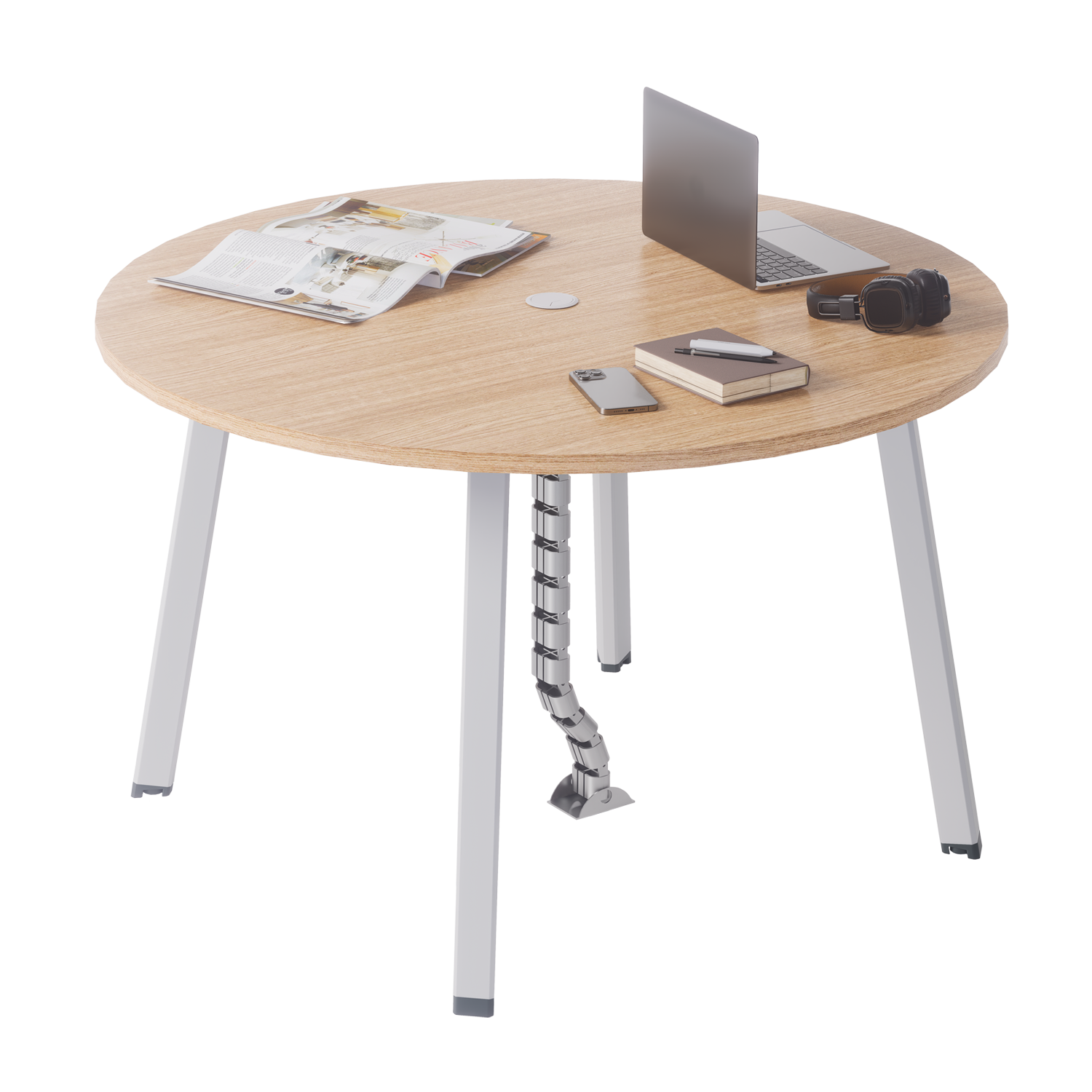 Equipped with flip-up access points and wire entry covers, cables can be easily routed from the floor to the surface. This system ensures smooth connectivity while maintaining a streamlined appearance.